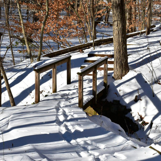 Audubon Birding Trail, Bench and Steps, Tiny Bridge Over Creek (I Love Small Structures Like This :D), Frozen Creek, Deer Tracks. Photos by Nature Photographer Pam Hirst at PKH Photography. Writing by Freelance Content Writer and Travel Blogger Meghan Hirst at Meghan Hirst, Writer.