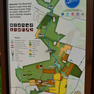 The Watershed Reserve is significantly large; the combined distance of the hiking trails is over ten miles :O The Meadow/Pond Trail includes a unique boardwalk feature. This boardwalk extends for half of a mile. The trails are accessible from sunrise to sunset every day.